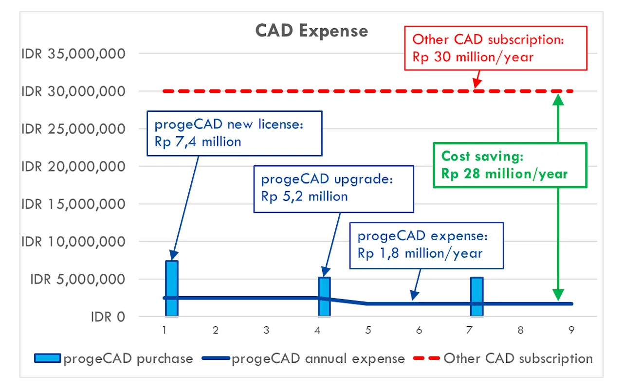 berikut ini adalah simulasi biaya yang dikeluarkan oleh perusahaan jika menggunakan progeCAD Professional Standalone License: